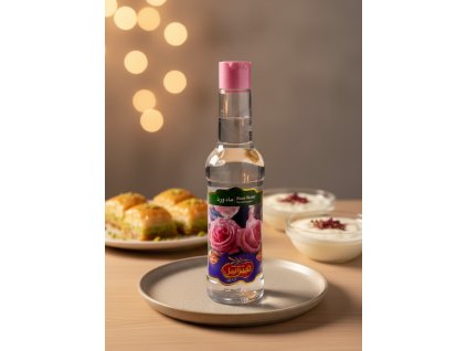 Růžová voda je tradičním orientálním produktem využívaným v kuchyni i při péči o pleť. Příjemná vůně růží, jemná chuť, vhodná do dezertů, nápojů a jako přírodní osvěžovač.
