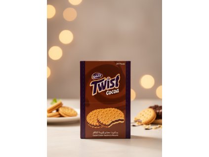 Křupavé čokoládové sušenky Twist Cocoa s jemným kakaovým krémem uvnitř. Ideální ke kávě nebo čaji, skvělé pro svačinu i jako lahodný dezert.