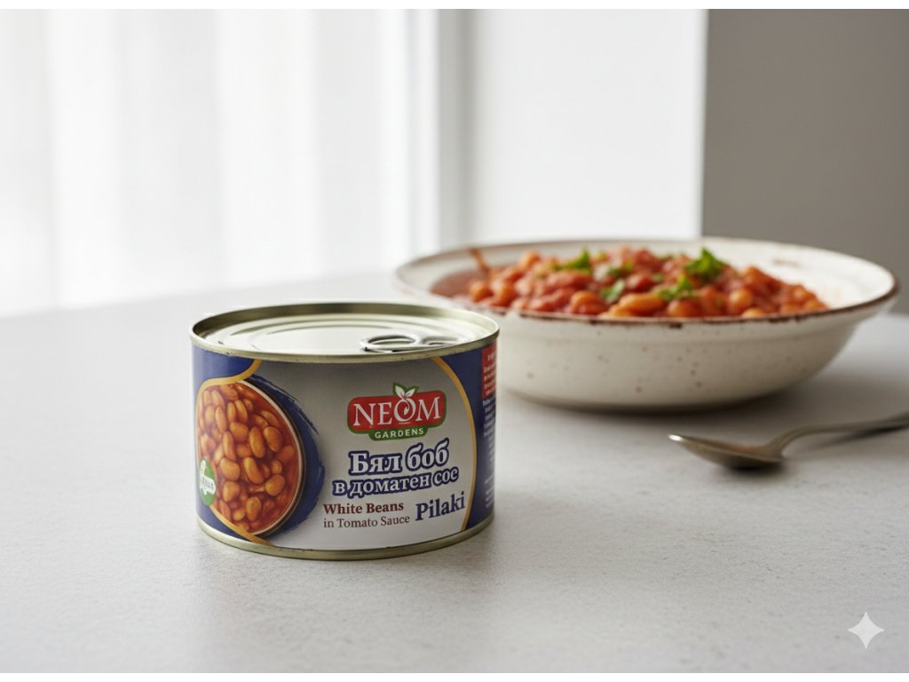 Bílé fazole v rajčatové omáčce - NEOM 400g (فاصوليا بيضاء في صلصة الطماطم)