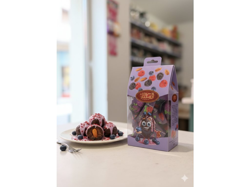 Datle plněné mandlemi v borůvkové čokoládě Al Tahhan 150g(تمر محشو باللوز مغطى بشوكولاتة التوت )