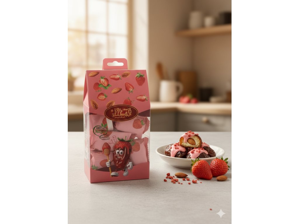 Datle plněné mandlemi v jahodové čokoládě Al Tahhan 150g( تمر باللوز و الفراولة )