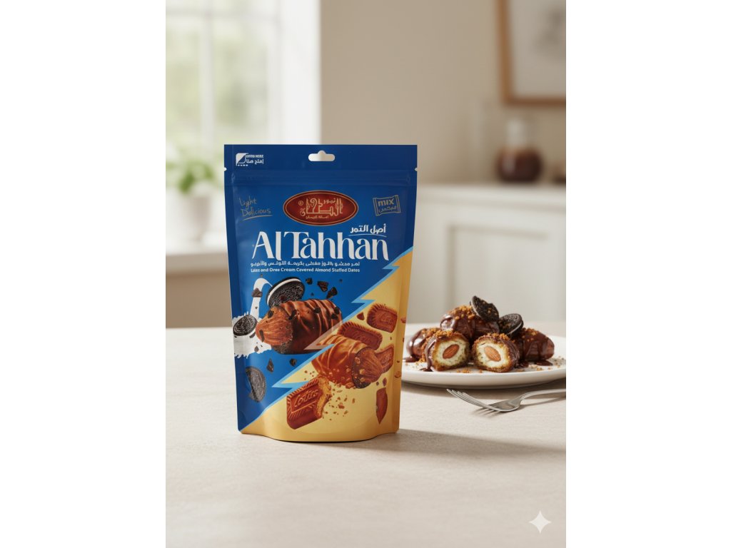 Datle plněné mandlemi v krému Lotus & Oreo 200g(تمر محشو باللوز مغطى بكريمة اللوتس و الاوريو)