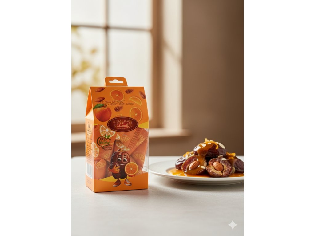 Datle plněné mandlemi v pomerančové čokoládě - Al Tahhan 150g(تمر محشو باللوز مغطى بشوكولاتة البرتقال)