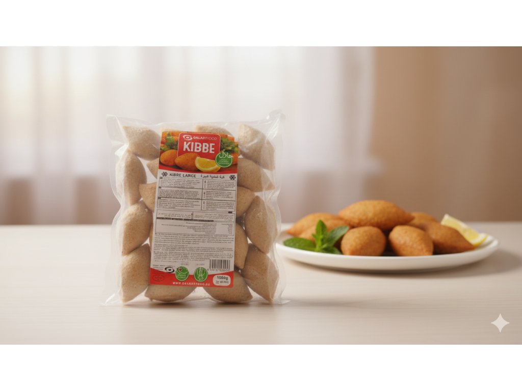 Složení: Masová náplň: [hovězí maso (35 %), cibule smažená, ořechy vlašské, jedlá sůl, směs koření, rostlinný olej řepkový], bulgurové těsto: [pšeničný bulgur (29 %), pšeničná mouka (3 %), pšeničná krupice (3 %), pšeničný škrob, bramborový prášek (brambory, stabilizátor: mono a diglyceridy mastných kyselin (E471)), směs koření, jedlá sůl, rostlinný olej řepkový], pitná voda.