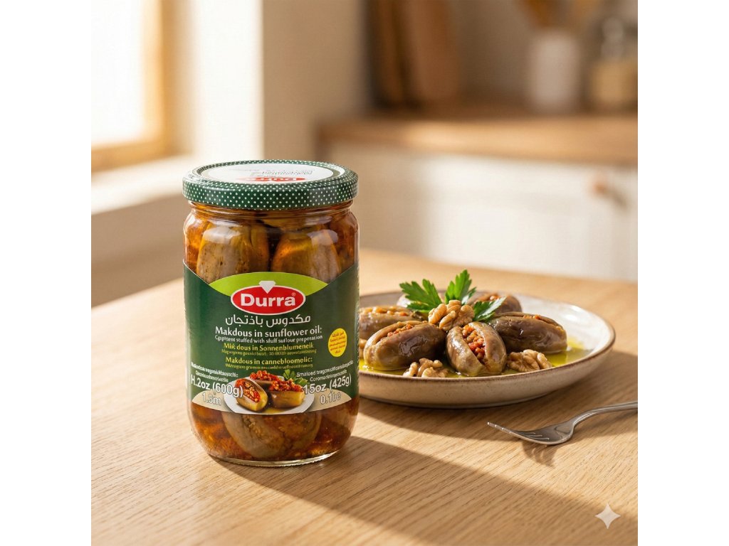 Makdous v slunečnicovém oleji - Durra 600g( مكدوس الدرة )