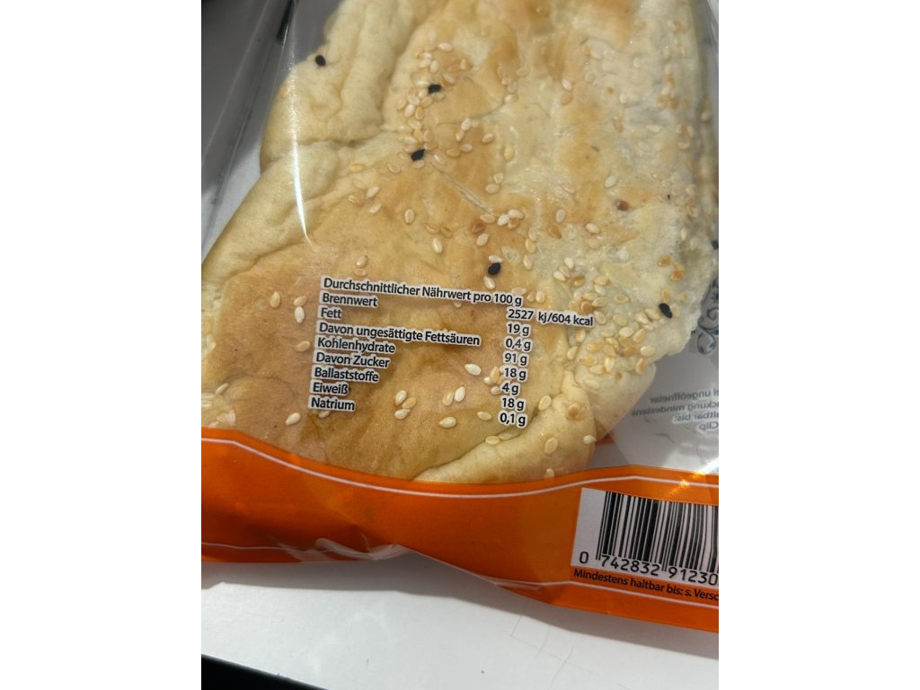 Pšeničná mouka, voda, cukr, sušené mléko, sůl, kvasnice, sezam, sýr.