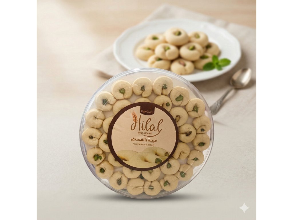 Máslový sušenky-Ghraybeh s pistáciemi - Hilal 510g(غريبة بالفستق)