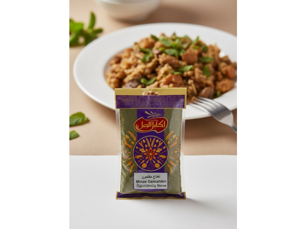 Mletá máta s intenzivní vůní, vhodná na ochucení pokrmů, nápojů a tradiční arabská jídla.