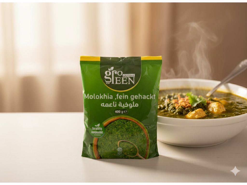 Složení: Jemně sekané listy molokhia (jutovníku).