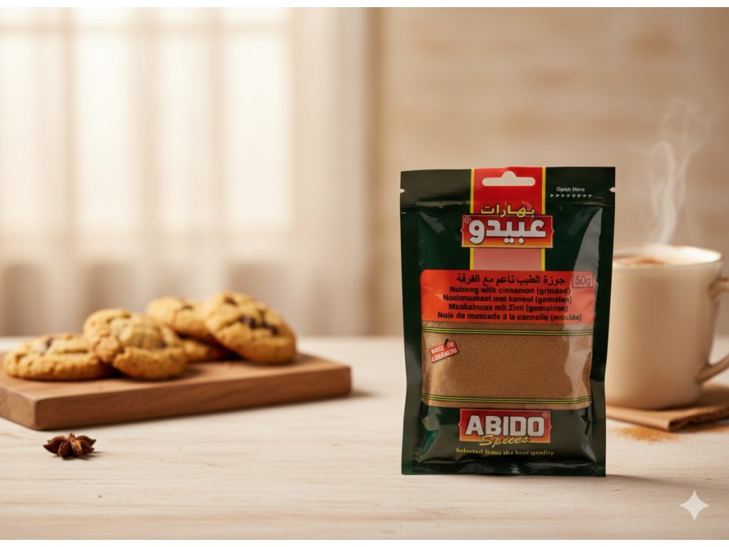 Muškátový oříšek se skořicí, mletý - Abido 50g ( جوزة الطيب ناعم مع القرفة عبيدو)