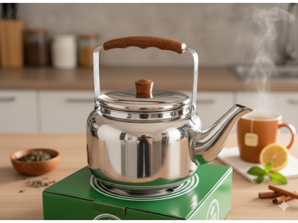 Nerezová konvice na čaj s dřevěným úchopem 1L / 2L (إبريق شاي ستانلس ستيل بمقبض خشبي)