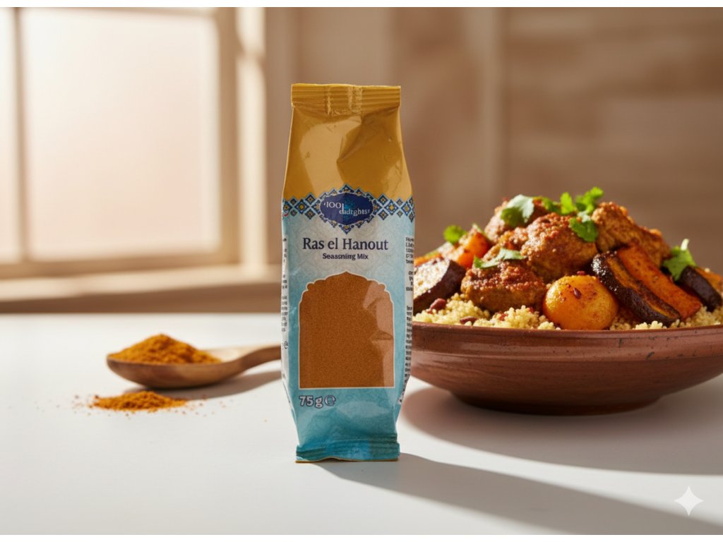 Složení: Tradiční severoafrická směs koření (může obsahovat skořici, hřebíček, kardamom, muškátový oříšek a další).