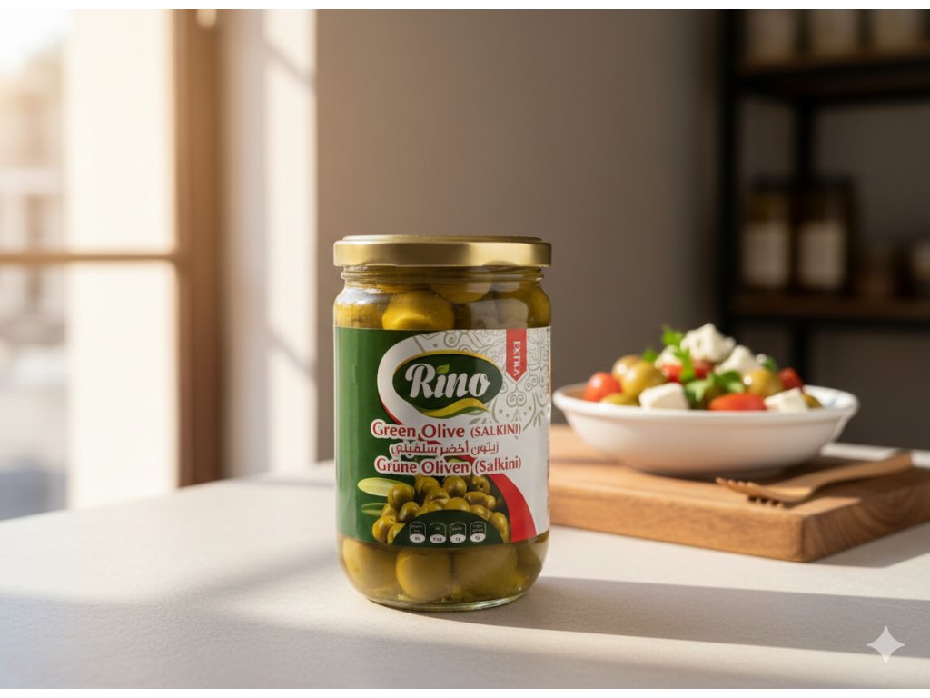 Zelené olivy Salkini jsou tradiční produkt libanonské gastronomie, který přináší svou jedinečnou chuť klasické středomořské kuchyně. Ovoce je pečlivě vybráno a konzervováno ve vlastním soku s přídavkem vody, soli, citronové kyseliny a aromatického zeleného tymiánu, který dodává olivám jemnou bylinnou notu.